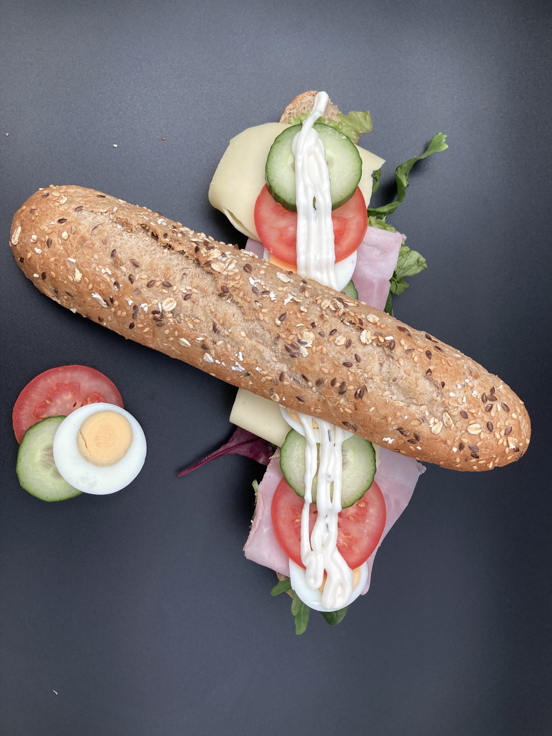 ham, kaas, sla, tomaat, komkommer, ei, yoghurt dressing